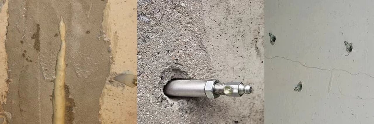 After the cracks are identified, holes are drilled at certain intervals for the injection ports,